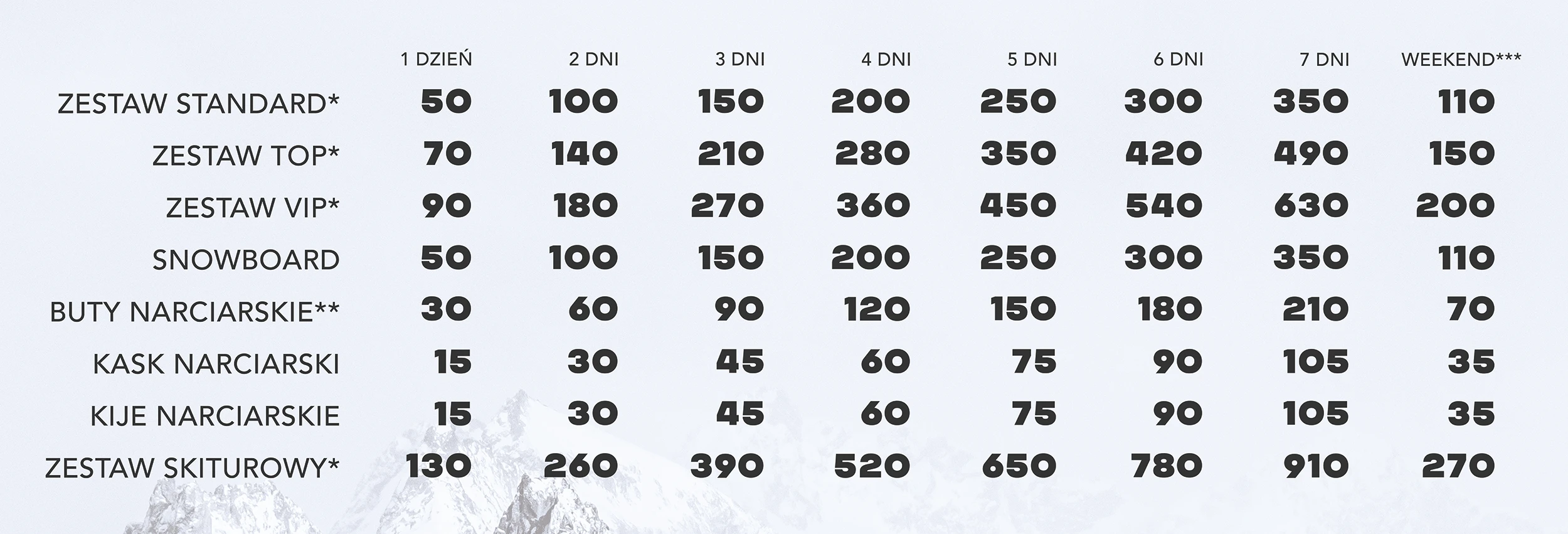Cennik wypożyczalni narciarskiej w Krakowie
